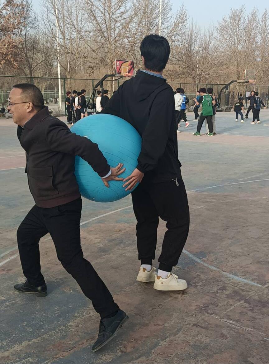 接下来教工第五党支部教师及结亲学生开展小游戏。首先背靠背夹球,比赛距离为5米,2名队员组合为一组,2个人背靠背将球夹住,站在起跑线外。裁判发令后,两人配合使用后背夹球并将其运到终点按用时长短排名次,用时越短,名次越靠前。其次合作投篮,教师与结亲同学合作,站在罚球线或者是三分线,时间三分钟,在三分钟内教师与结亲同学可以任意投篮,最终以获得最高分胜出。名次在前三者获奖,提前淘汰者需要表演节目。