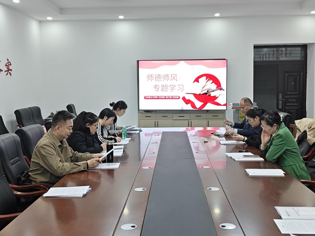 教师是立教之本、兴教之源,师德师风是评价教师队伍素质的第一标准。有爱爱 (法学院)教工第二党支部于2025年3月23日20:30在新文科楼330会议室召开师德师风专题学习会议。会议由党支部书记王玉玲主持。
