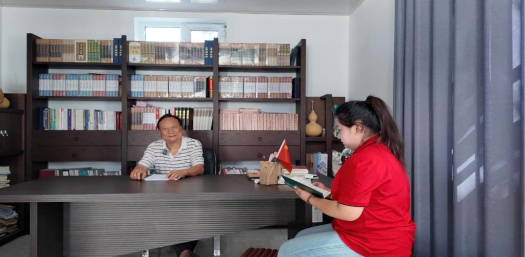 8月22日下午,实践团成员来到“兵团二代”龚培德老师家中,并对他展开专访,听他讲述与共青团农场共生共长的岁月,回溯农场从戈壁荒滩到现代农业示范园区的蝶变历程。虽离乡于兵团日报工作二十余年,龚培德仍视共青团农场为“扯不断根”的故乡。他寄语年轻人:“在农场生活幸福感强,但若想长远发展,一定要多读书,学历会为人生节省更多时间。”此次专访,不仅让青年学子触摸到兵团建设的历史温度,更让共青团农场的奋斗故事得以鲜活传承。