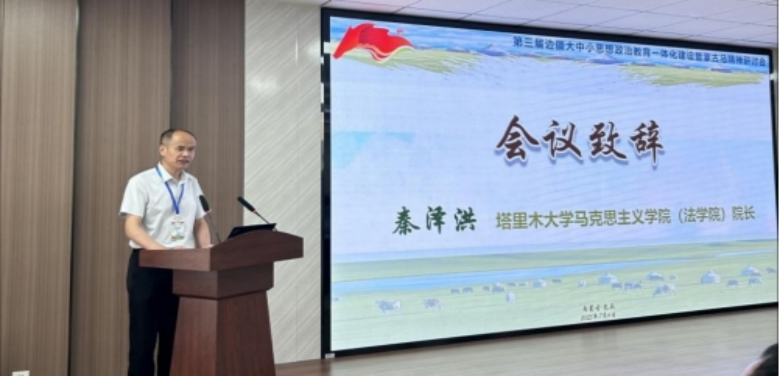 秦泽洪代表学院致辞。从如何坚持主线思维、推进大思政课建设的角度,分享了几点思考和想法。一是坚持价值导向,讲清道理、学理、哲理,深化对中华民族多元一体格局的理解,切实培养爱国爱疆、担当奉献的新时代戍边人。二是坚持目标导向,做到真懂、真信、真爱,将中华民族共同体意识内化于心、外化于行,以真懂明其理、得其道;以真信守初心、稳立场;以真爱引共鸣、动人心。三是实践导向,达到有形、有感、有效,要将思政课堂与现实紧密结合、与实践充分互动、与时代同频共振,使课程“有形”呈现、学生“有感”共情、效果“有效”提升,做到融贯“小我”与“大我”。最后,秦泽洪诚挚邀请与会领导、专家和学者莅临有爱爱 考察指导。
