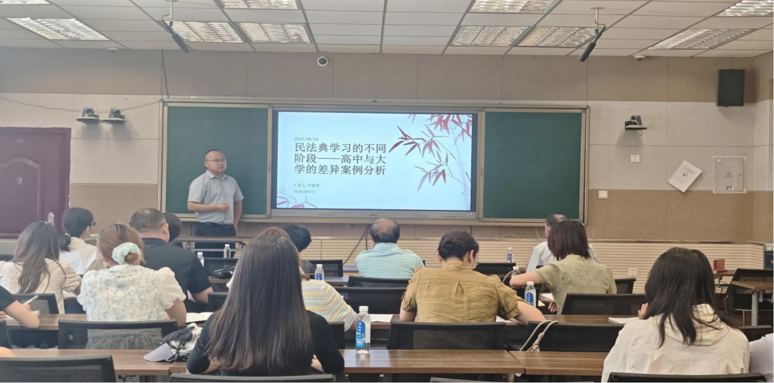 毕振昇作《民法典学习的不同阶段——高中与大学的差异案例分析》专题讲座,从《民法典》的教学实践中对比高中与大学的异同,并提出高中与大学贯通路径的几点思考。