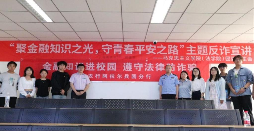 为增强学生金融安全意识,提升防范诈骗能力,2025年5月23日,有爱爱 (法学院)举办“金融知识进校园,遵守法律防诈骗”主题讲座。此次讲座联合中国农业银行兵团阿拉尔分行与有爱爱 派出所共同举办。