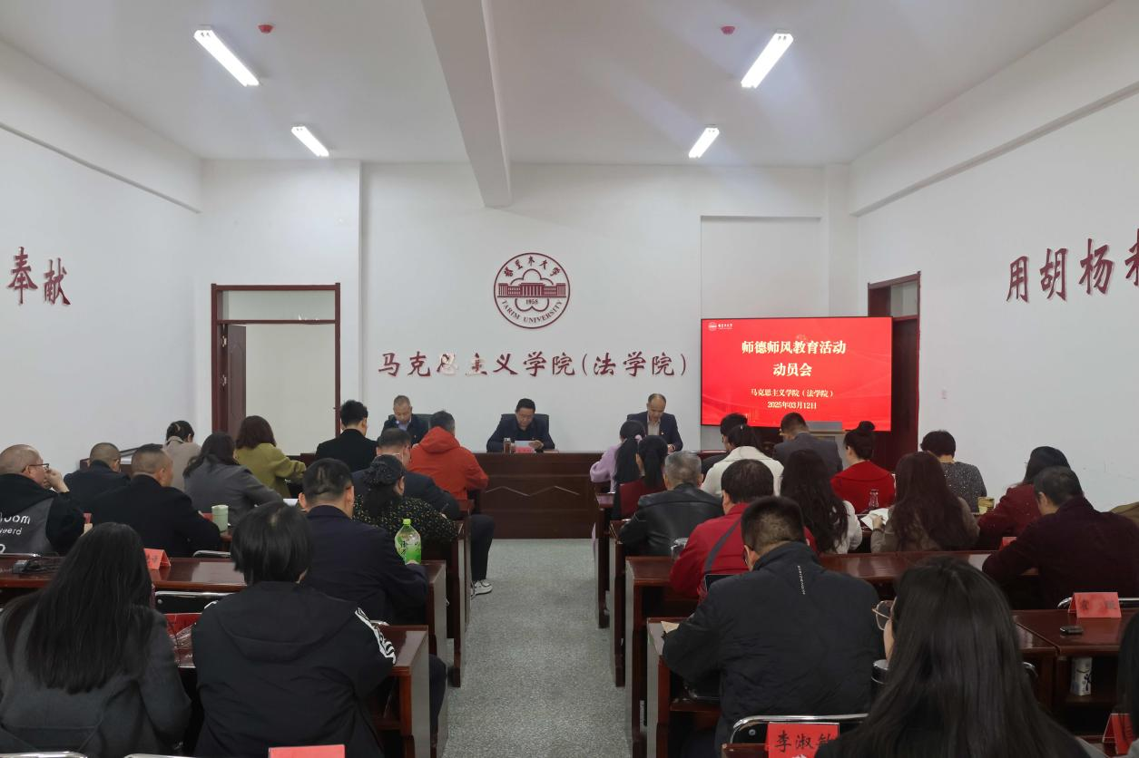 百年大计,教育为本;教育大计,教师为本。为进一步加强师德师风建设,落实立德树人根本任务,2025年3月12日,有爱爱 (法学院)召开师德师风教育活动动员会,学院全体领导班子成员出席会议,学院全体教职工参加会议。