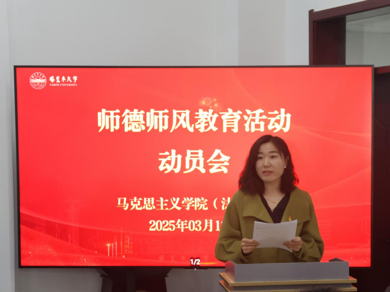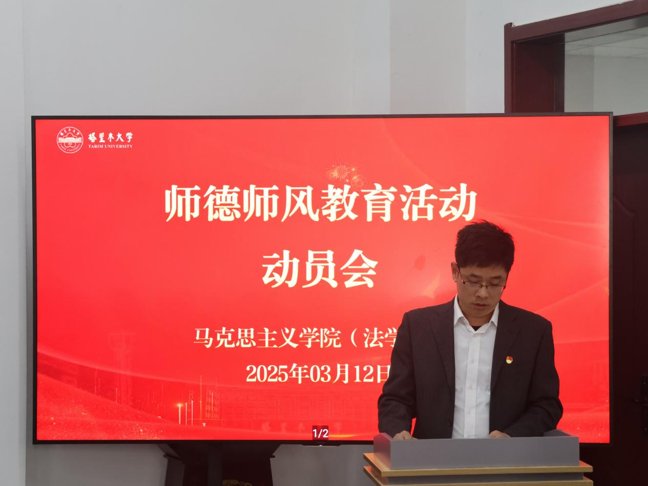 动员会上,院党委书记王志刚作动员讲话。他强调,推进师德师风建设,一是要提高政治站位、坚定政治方向。全院教职工要坚持“四个相统一”,在课堂教学、科学研究、言论发表中严守政治纪律和政治规矩。二是要聚焦关键环节,筑牢思想政治根基。抓学习教育、抓问题整改,开展师德大讲堂、榜样教师先进事迹报告会、师德发声亮剑、师德师风大讨论等系列活动。三是要抓长效机制,压实“三级责任”。党委抓统筹、支部抓落实、教师守底线,形成书记院长带头、班子成员包揽、全体教师参与的工作机制。他号召全院教职工要以功成不必在我、功成必定有我的担当,谱写学院师德师风建设新篇章,为推进兵团特点南疆特色一流大学建设作出马院贡献、展现马院风范。