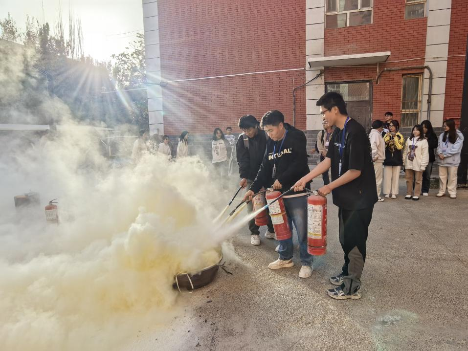 不鲁汉向全体参演学生宣讲了火灾逃生及火灾报警注意事项,讲解了灭火器的使用方法并作灭火示范。同学们纷纷上前尝试,亲身实践灭火,不仅掌握了火灾应急处理技能,还增强了安全意识。