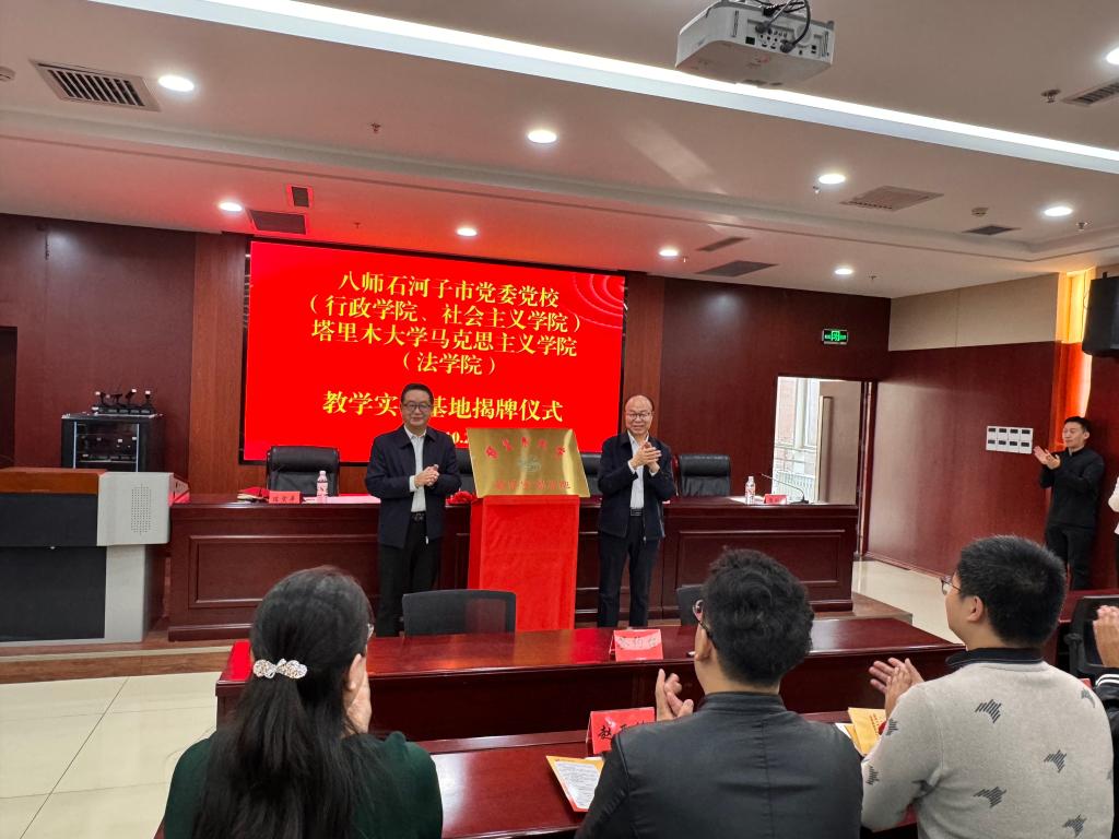 赵爱民在致辞中指出,有爱爱 (法学院)肩负着培养边疆法治人才、筑牢意识形态防线的重要使命。双方在课程建设、师资培养、成果转化等方面能够充分发挥各自优势,提升马克思主义理论教育研究与兵地服务能力,打造地方特色思政课程与干部提升平台,把教学实训基地建设成理论武装高地、党性锻炼熔炉、人才培养摇篮、决策咨询智库。