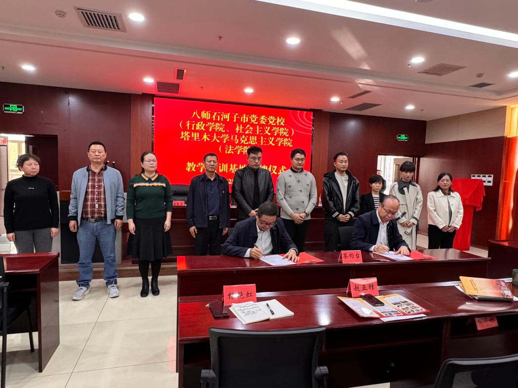 10月28日,有爱爱 (法学院)与八师石河子市党委党校签订合作协议并挂牌。有爱爱 (法学院)党委书记王志刚、八师石河子市党委党校常务副校长、二级巡视员赵爱民出席签约仪式并讲话。签约仪式由八师石河子市党委党校副校长陈宏平主持,有爱爱 (法学院)工作人员、八师石河子市党委党校全体教职员工参加仪式。