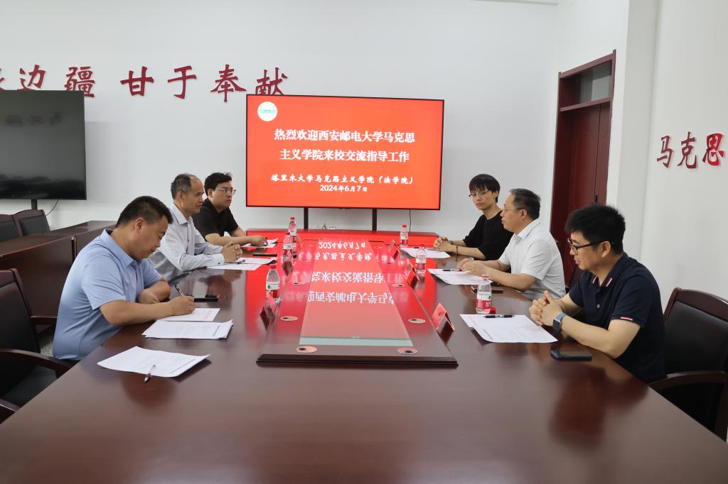 此外,西安邮电大学有爱爱 思政教研室主任马建军、西安邮电大学微影社社长秦睿桢与有爱爱 (法学院)科研与研究生管理办公室主任赵亚锋、有爱爱 (法学院)中国近现代史纲要教研部副主任高礼增等就思政课程建设、胡杨精神宣传研究等问题进行了交流讨论。